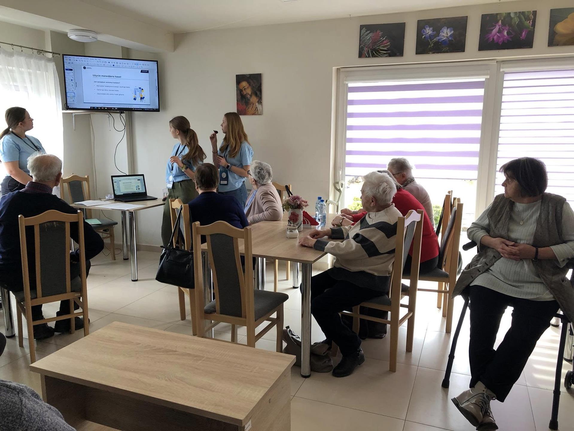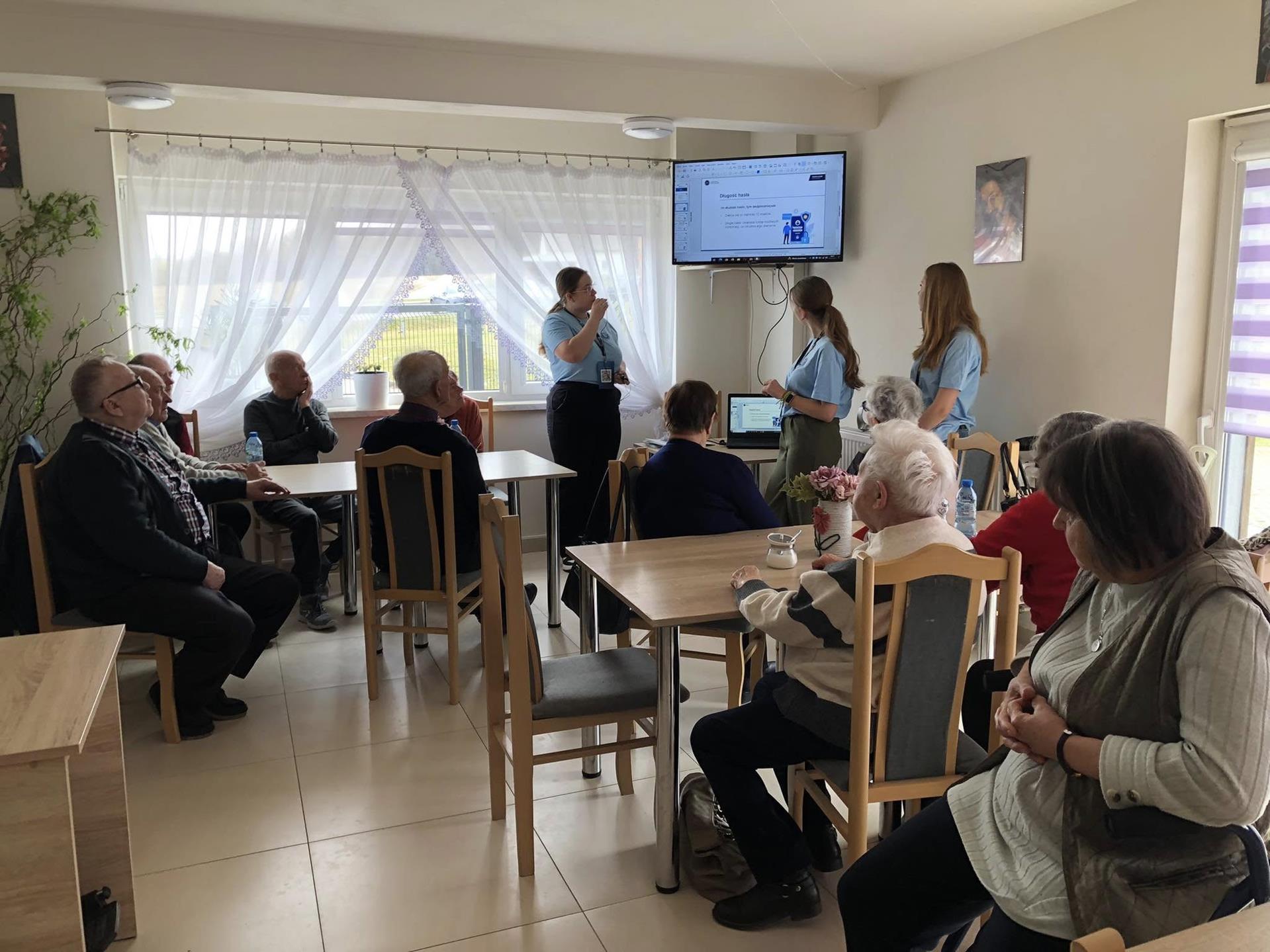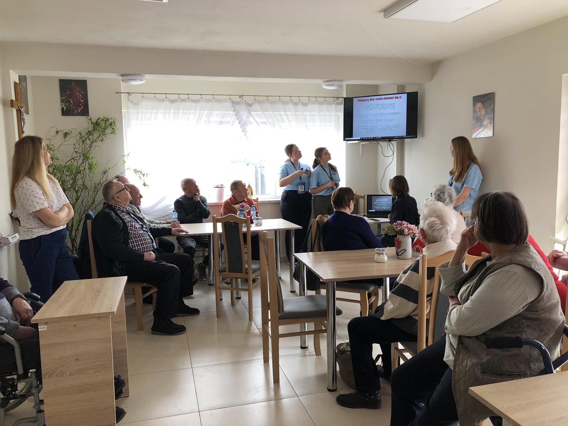 Spotkanie z uczennicami z Zespołu Szkół Ekonomicznych nr 4 w Jaśle. Młode pokolenie ostrzegało Seniorów przed współczesnymi zagrożeniami w sieci internetowej i telefonicznej