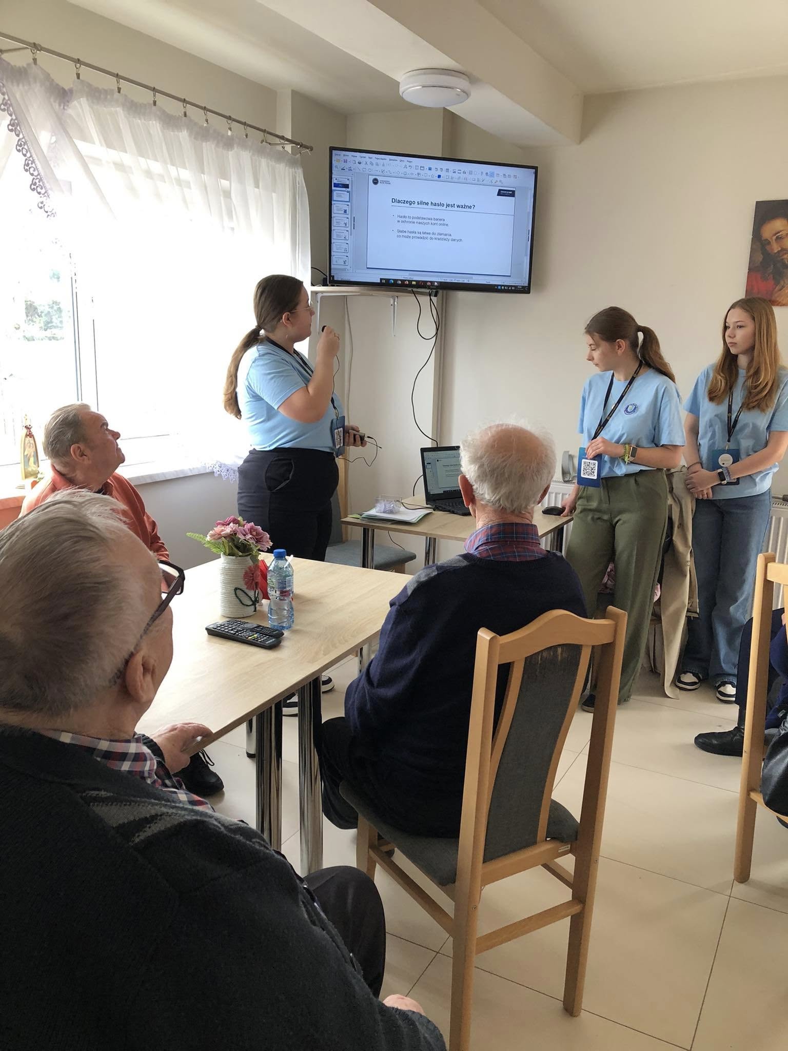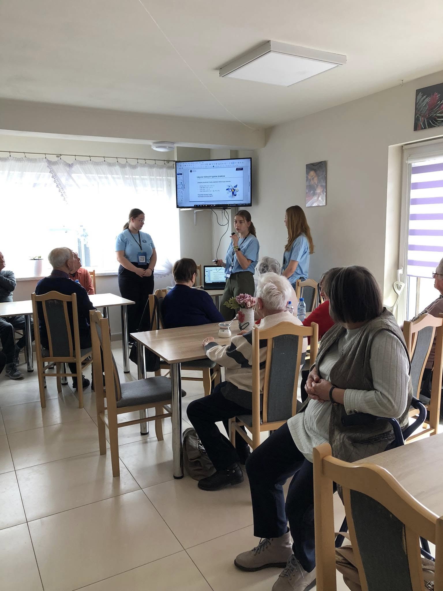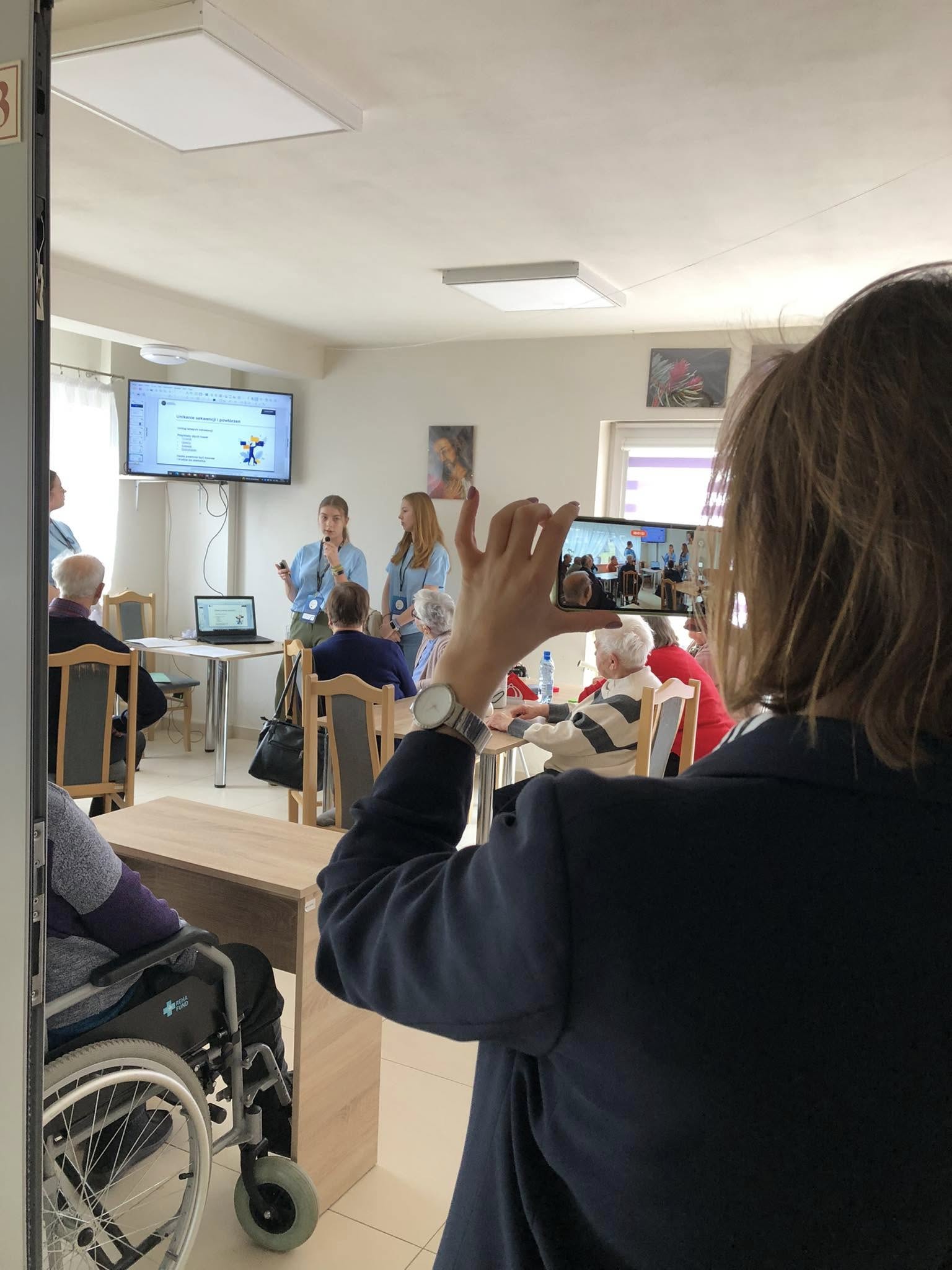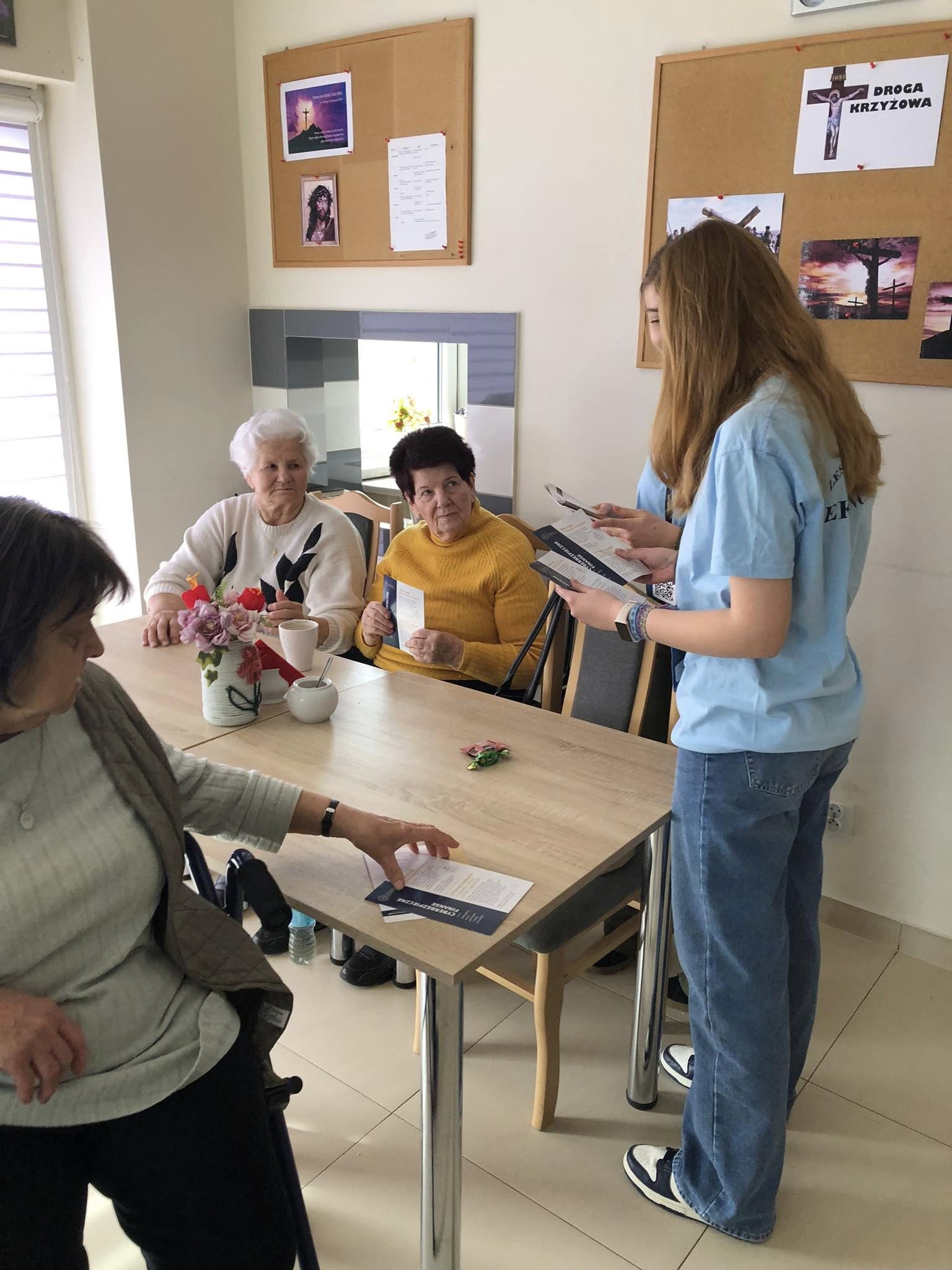 Spotkanie z uczennicami z Zespołu Szkół Ekonomicznych nr 4 w Jaśle. Młode pokolenie ostrzegało Seniorów przed współczesnymi zagrożeniami w sieci internetowej i telefonicznej
