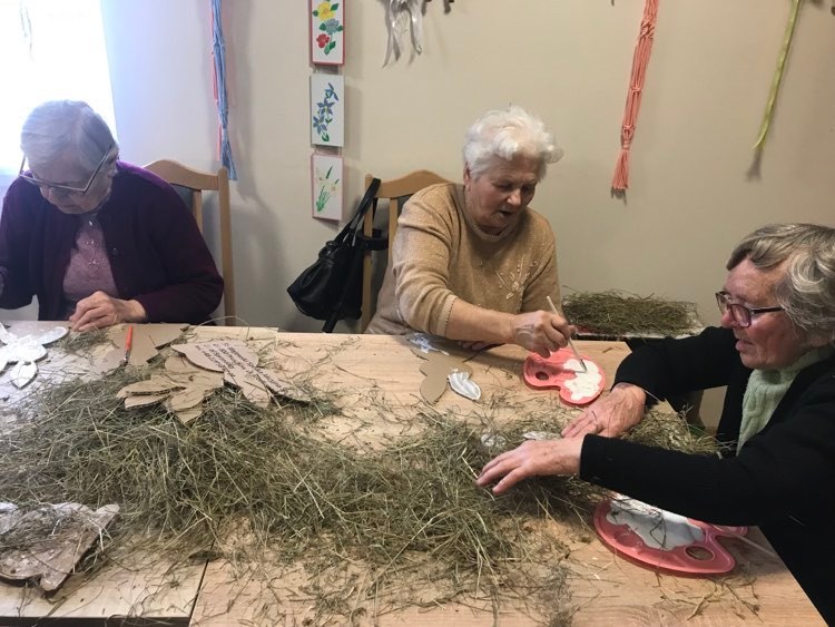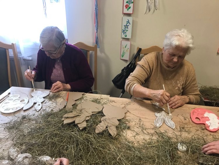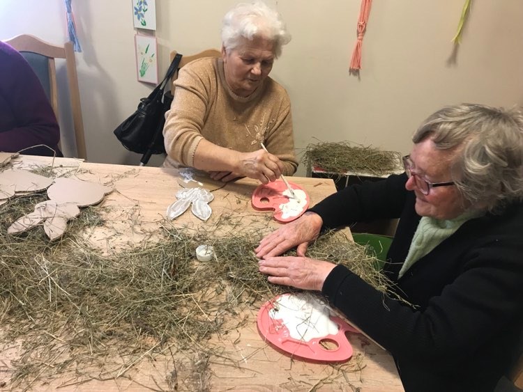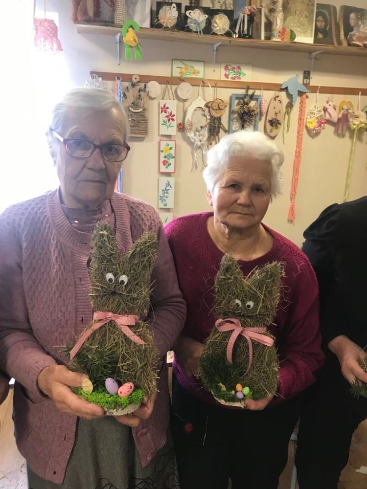 5 kwietnia 2023 14:29 Terapia zajęciowa- robienie królików jako świąteczne stroiki dla naszych seniorów Tweet Terapia zajęciowa - robienie królików jako świąteczne stroiki dla naszych seniorów